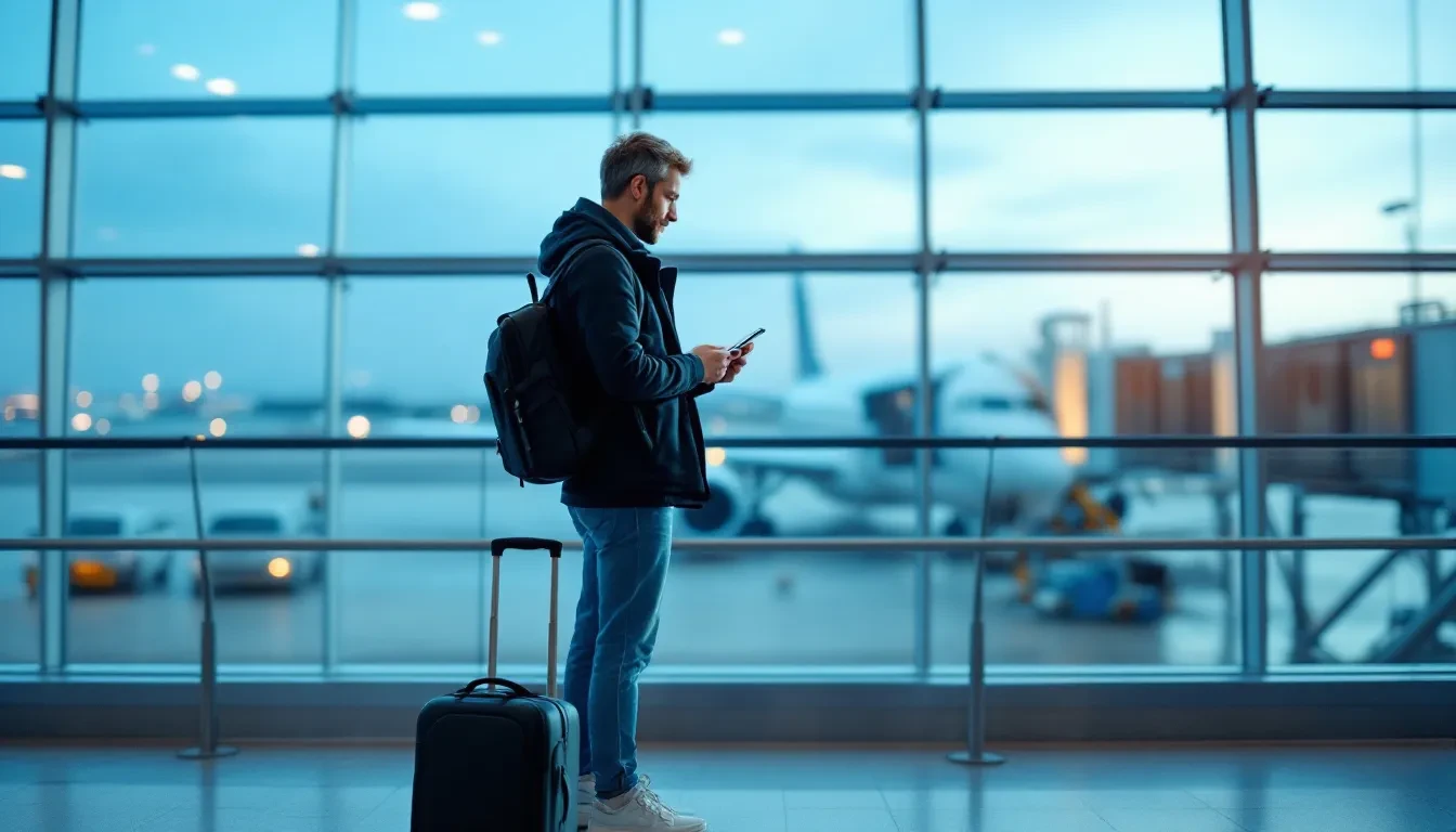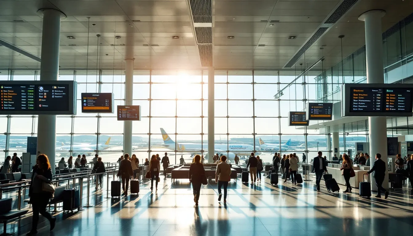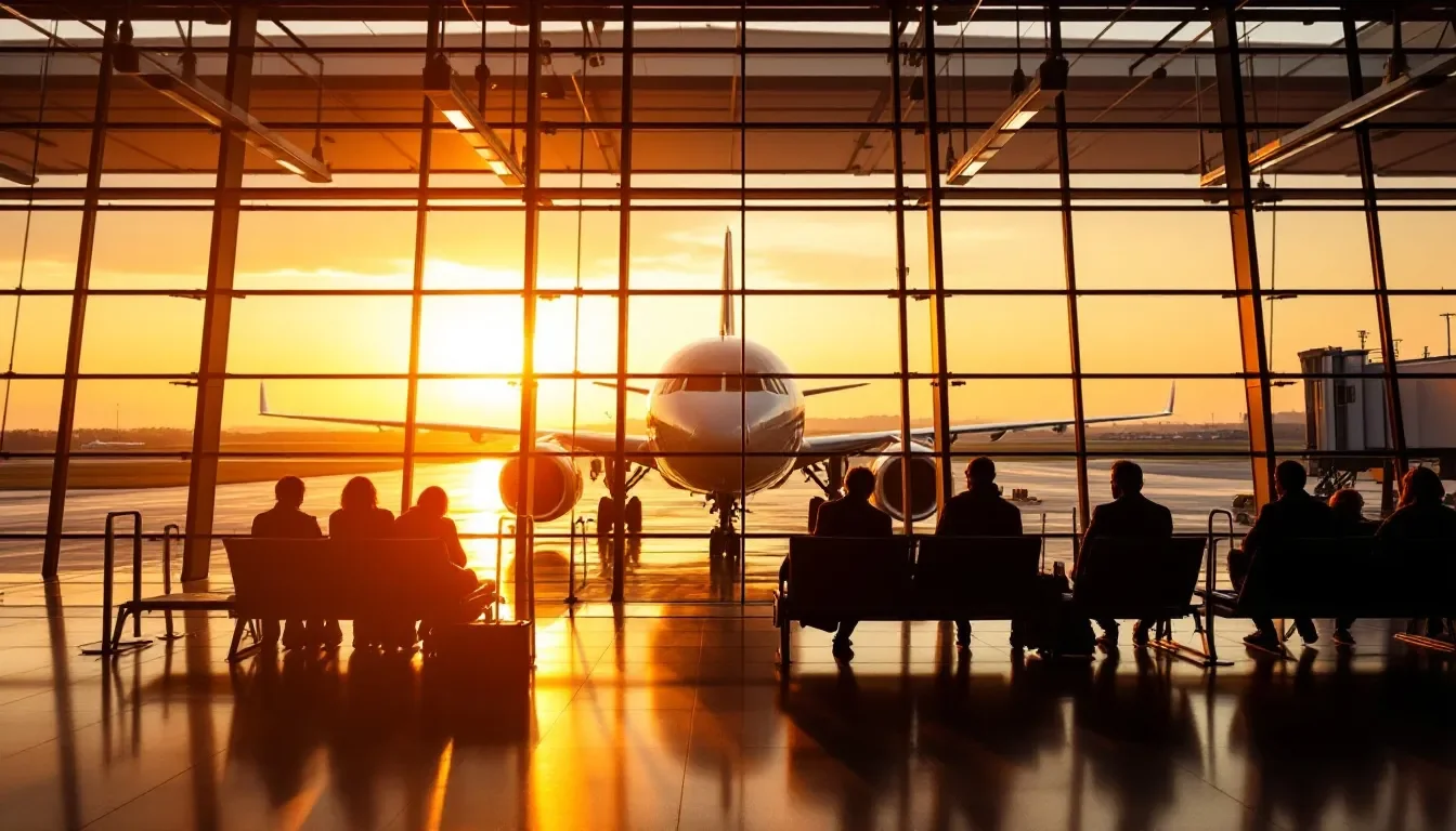 Serene airport scene symbolizing the smooth onward travel enabled by a dummy ticket.